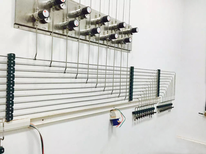 气路安装是指气瓶与仪表终端之间的连接管,一般由气体开关装置、泄压装置、阀门、管道、过滤器、报警、接线盒、调节阀等部件组成。那么实验室气路安装的注意事项是什么呢?1.所有气体管道均采用优质气体管道.无缝不锈钢管完全退火(BA等级)。铜管仅用于气体管道末端,对气体纯度要求不严格。(如通风柜)。2.气体安装管道不得敷设电缆和导线。3.易燃气体,如乙炔,需要与其他气体分开引入。氢气管道与其他可燃气体管道平