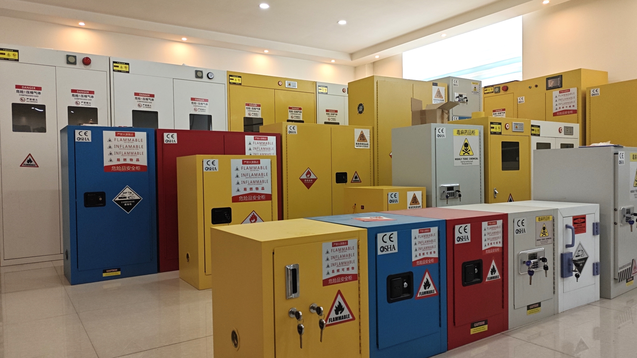 许多工业场所、实验室和仓库中,会涉及各种危险化学品,如易燃液体(汽油、酒精等)、可燃气体、氧化剂和腐蚀性物质。这些化学品如果储存不当,很容易引发火灾、爆炸或化学泄漏事故。防爆柜能够提供一个相对安全的储存环境,其特殊的结构和材料可以有效降低事故风险。在石油化工企业中,有大量的有机溶剂需要储存,使用防爆柜可以防止这些有机溶剂挥发形成可燃气体积聚,从而避免可能发生的爆炸危险。对于实验室来说,防爆柜可以将